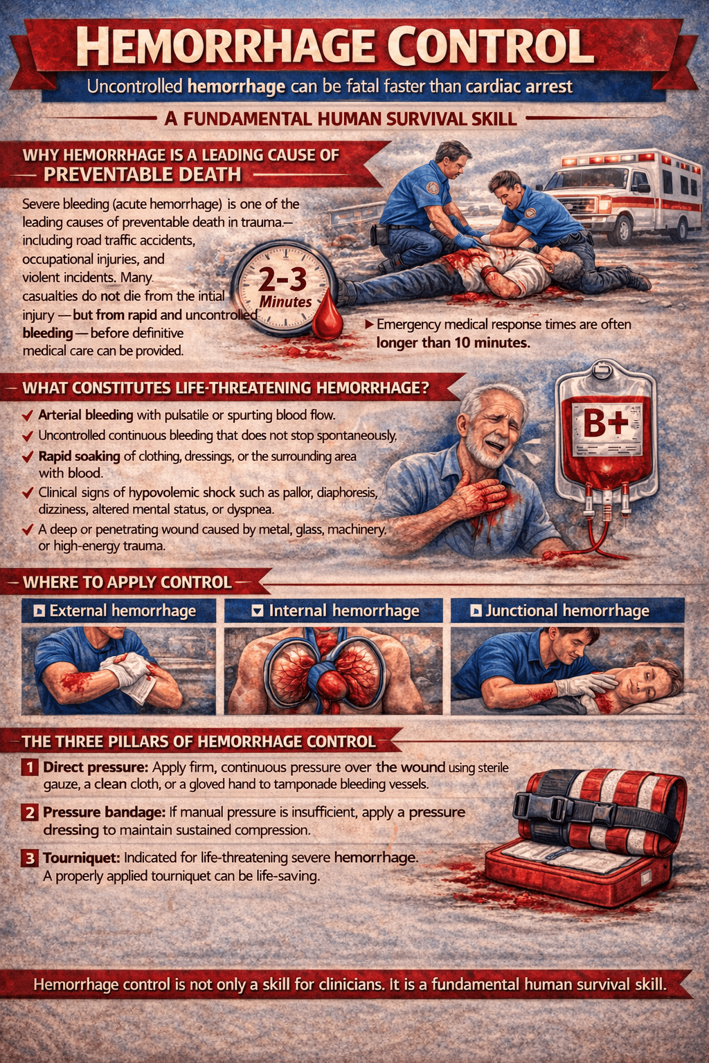 HEMORRHAGE CONTROL – Uncontrolled hemorrhage can be fatal faster than cardiac arrest